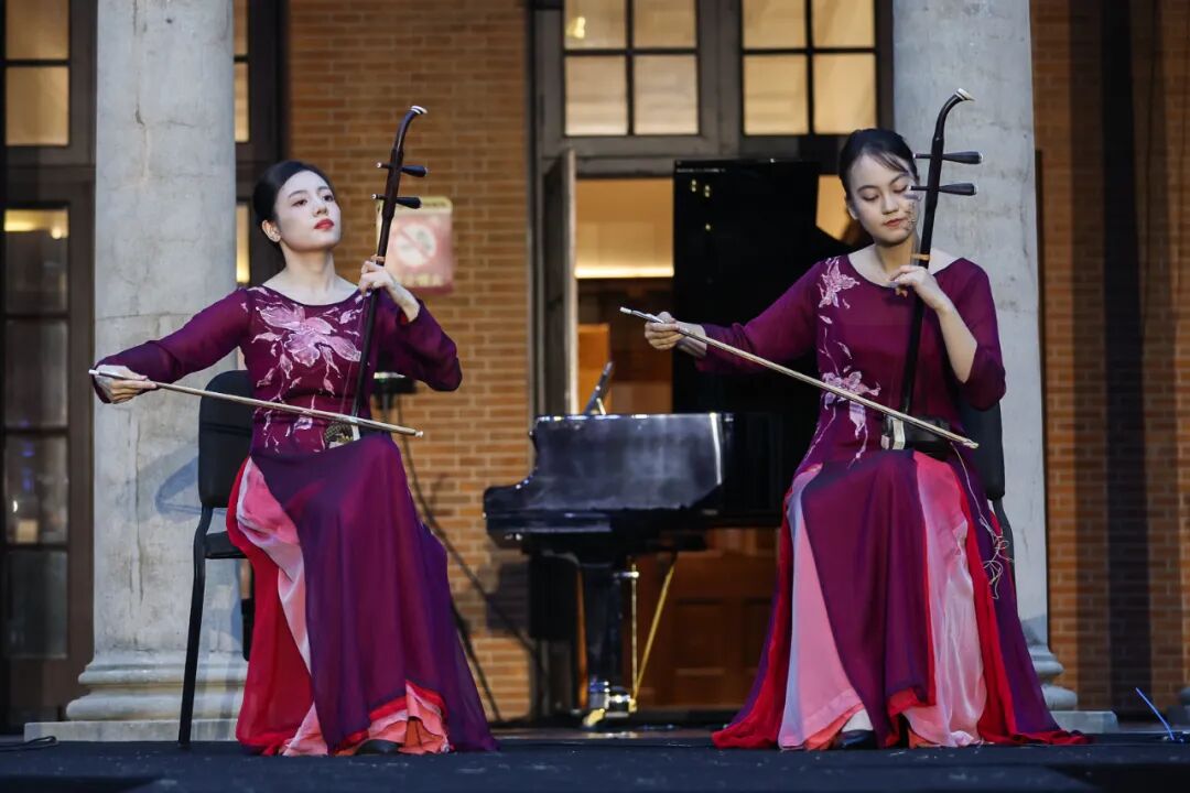 今天,上海音乐学院在汾阳路校区城市音乐会客厅前草坪,为广大市民和音乐爱好者献上一场“国庆草坪音乐会”。傍晚时分,华灯初上,在秋夜的微风中,音符与百年建筑交织共鸣,为“人民城市”的生动实践,写下华美的注脚。
