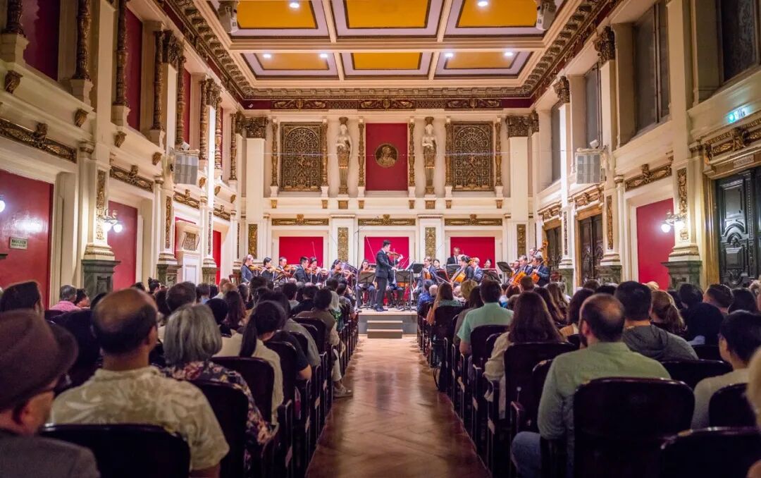 音乐会终章,落在勋伯格早期浪漫主义的宏伟诗篇——《升华之夜》之上。在勋伯格那充满半音化旋律与丰富对位的音乐洪流中,两个群体的弓弦完美交融。声部间的对话,既是音乐内部的呼应,也成为了文化间相互倾听与应答的象征。