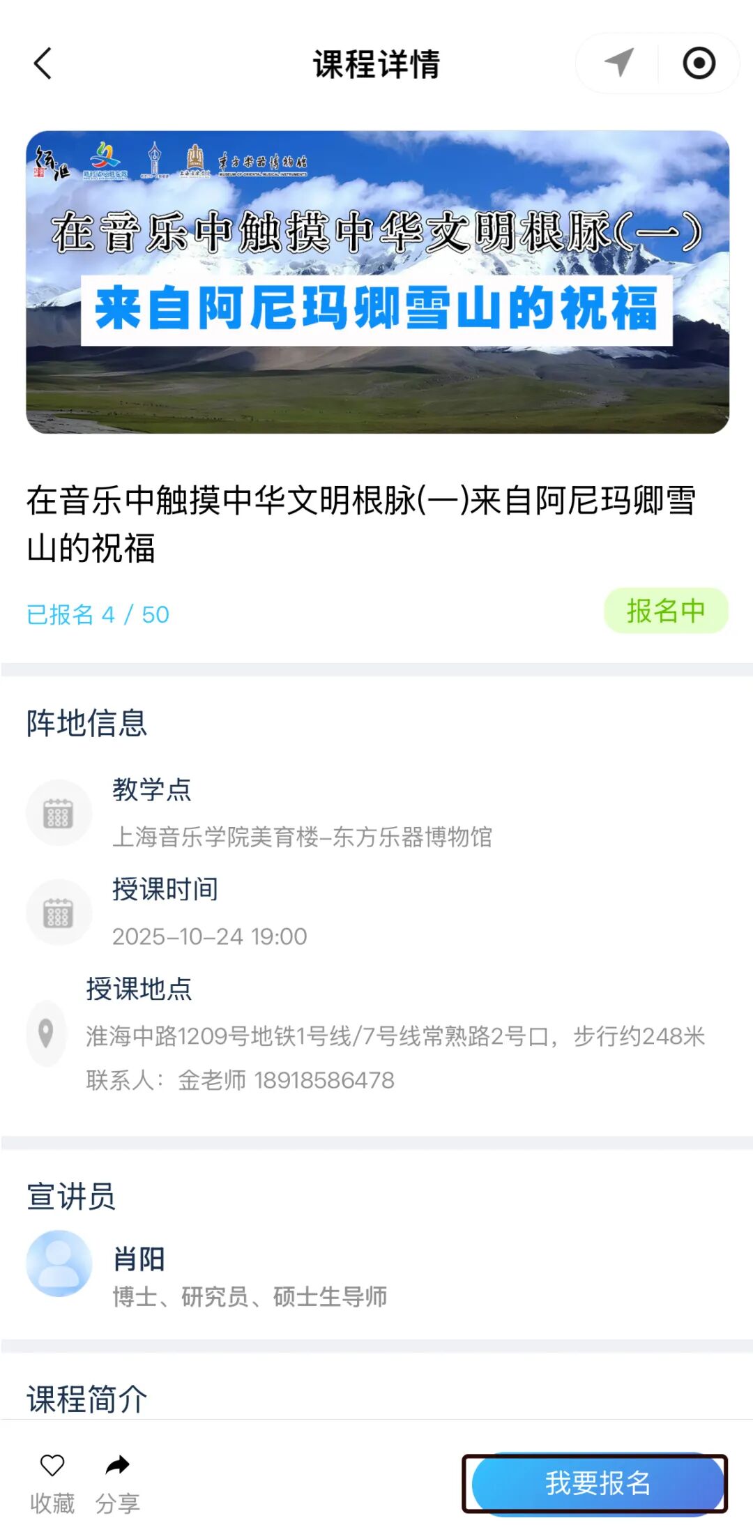 注意:报名后可在“我的消息”页面查看审核通过的消息,课程开始前一天还将通过微信发送提示信息。