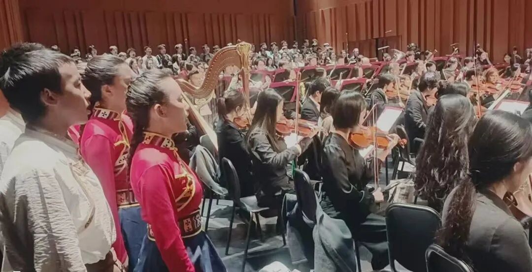 11月27日晚,果洛西宁民族中学的果韵同声合唱团身着民族服饰,登上上海音乐学院建校98周年音乐会舞台,与上海音乐学院合唱团一起,参与由光未然作词、冼星海作曲的大型合唱声乐套曲《黄河大合唱》的演唱,共庆上音建校98周年,赢得现场阵阵掌声。