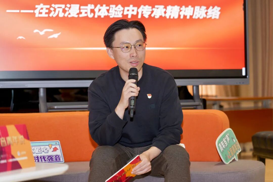 辅导员殷鸣璐分享了在参与团队创作过程中,将引领学生思政教育的第二课堂拓展至党史馆、纪念馆到人民大会堂,在实地走访与沉浸式体验中,为后续创作筑牢思想根基。