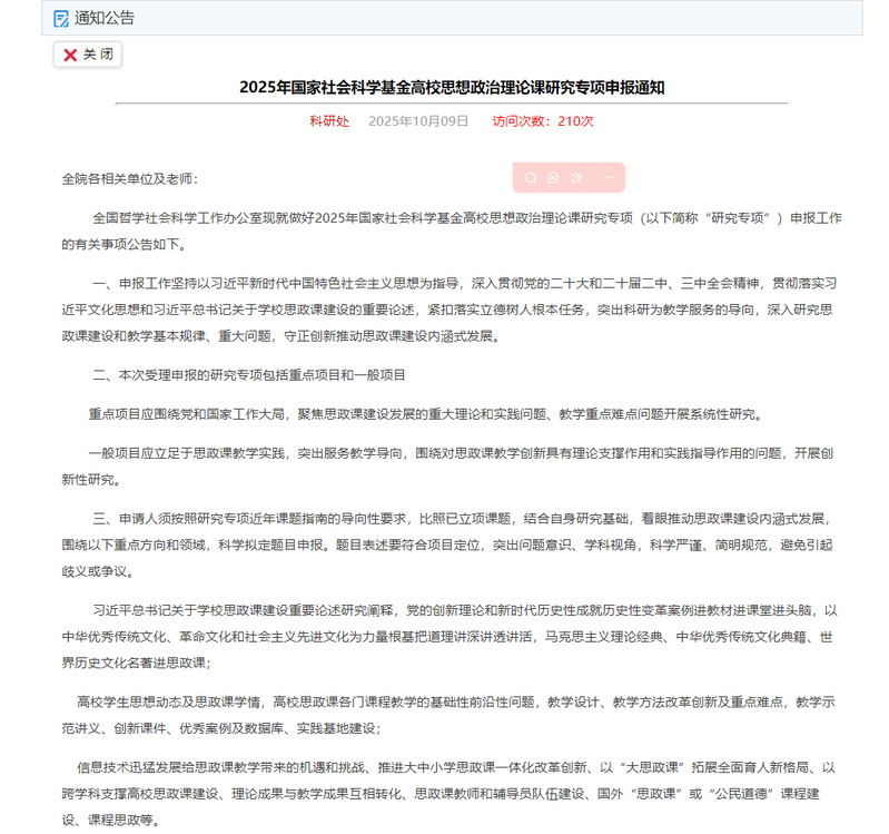 国家社会科学基金高校思想政治理论课研究专项申报(2025年)