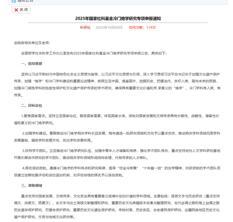 国家社科基金冷门绝学研究专项申报(2025年)