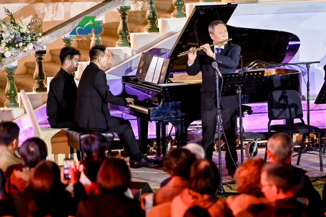 作为鼓浪屿世界文化遗产地的标志性建筑,修缮后首次对外开放演出的漳州路5号,以其庄重的壁柱、精致的雕花、白墙红瓦与海岛夜色交相辉映,构成一幅流动的历史画卷。此次“夜色满庭芳”庭院音乐会以“音乐+建筑”为核心特色,将上音艺术资源与鼓浪屿世界文化遗产资源深度融合,助力沪厦两地深化合作,为社会主义文化繁荣发展奏响更加嘹亮的时代乐章。