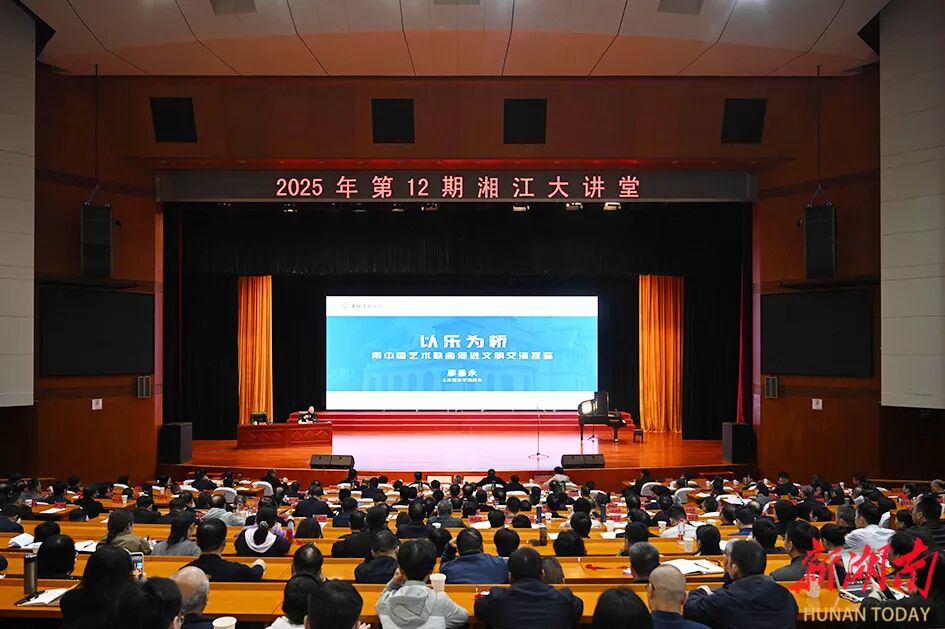 近日,2025年第12期“湘江大讲堂”在湖南省委党校举行。上海音乐学院院长、著名男中音歌唱家、歌剧表演艺术家、声乐教育家廖昌永教授应邀登台,以《以乐为桥:用中国艺术歌曲促进文明交流互鉴》为题,为现场听众带来了一场兼具理论深度与艺术感染力的专题讲座。