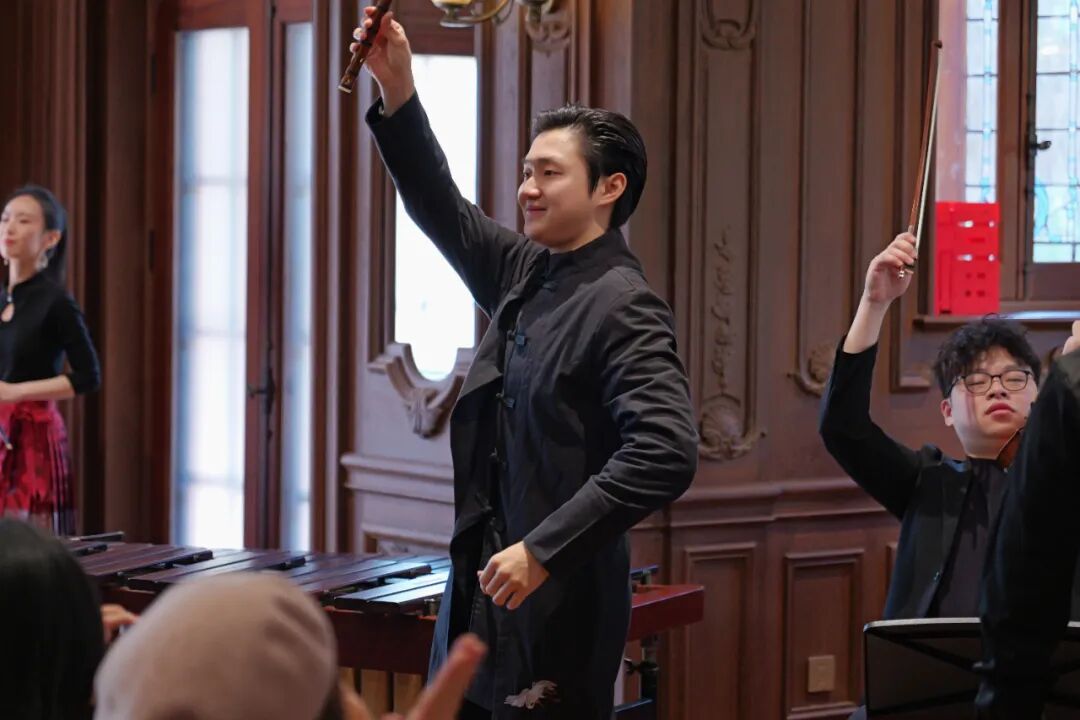 打击乐博士生张佳婧演绎的全新改编的马林巴版《草原英雄小姐妹》惊艳亮相,6分钟快慢快的精巧结构,以灵动之音演绎赤诚情怀,别样诠释经典魅力;钢琴研究生张新禾与室内乐团带来《春之声圆舞曲》,以钢琴与弦乐四重奏交织出维也纳圆舞曲的轻盈。