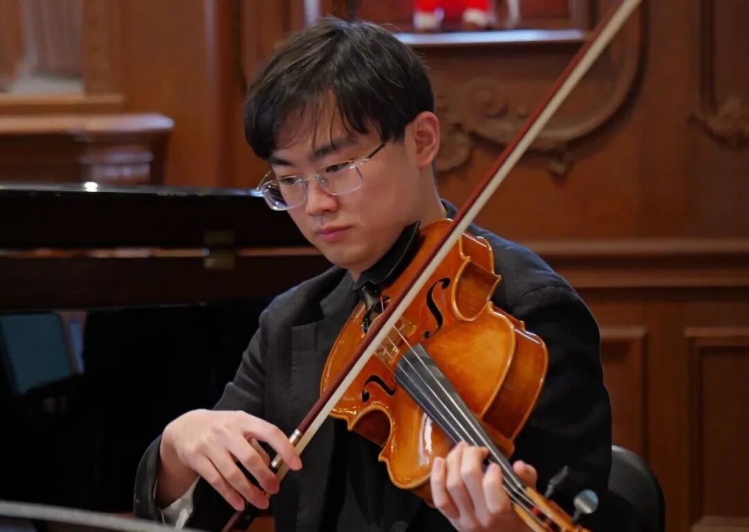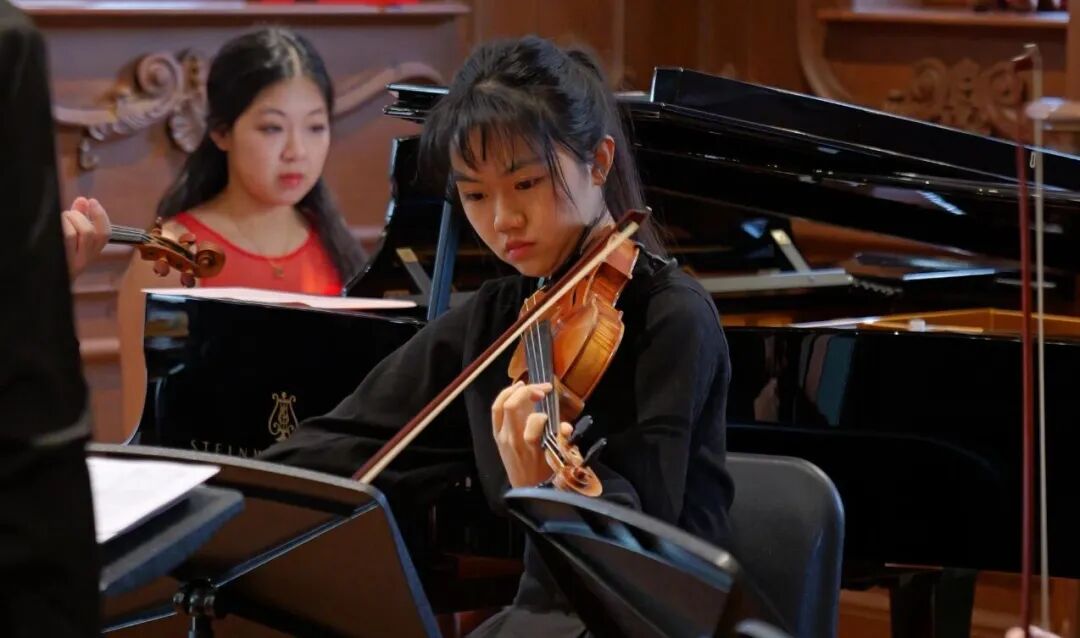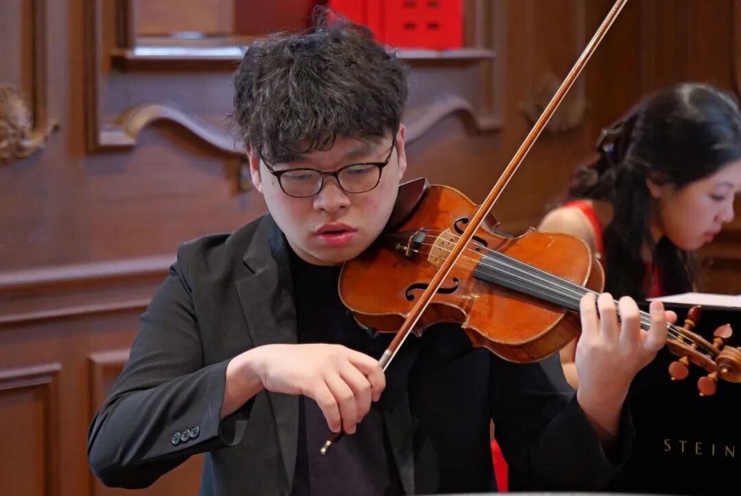 舞台上不仅汇聚朱婧、陈善治、张佳婧三位“文华奖+金钟奖”双料得主,更缩影了上音“全链条”人才培养体系:从附小一路升读至硕士的李秉璋、贺若芸,从附中到博士生二年级的张佳婧,再到青年教师大提琴家潘衍,本硕博学生和教师多梯队同台献艺。指挥高健执棒下,室内乐组合配合默契,赢得阵阵掌声。