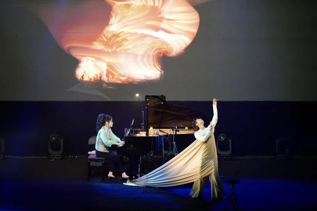 《国乐艺术剧场的数智赋能创新实践》项目依托上海音乐学院“教创演研一体化”人才培养模式,结合原创的艺术实践作品《丝路之乐·唐韵回响》《南韵·国色》,将课程教学与艺术实践紧密结合,形成“理实联动、创制一体”的教学模式。秉持“时尚包装经典,传统走入现代”的主旨,利用数智技术,结合跨界媒体艺术形式,以中华传统文化为根基,探索数字智能协同舞台创制与数字媒体艺术融合的音乐剧场新形式。