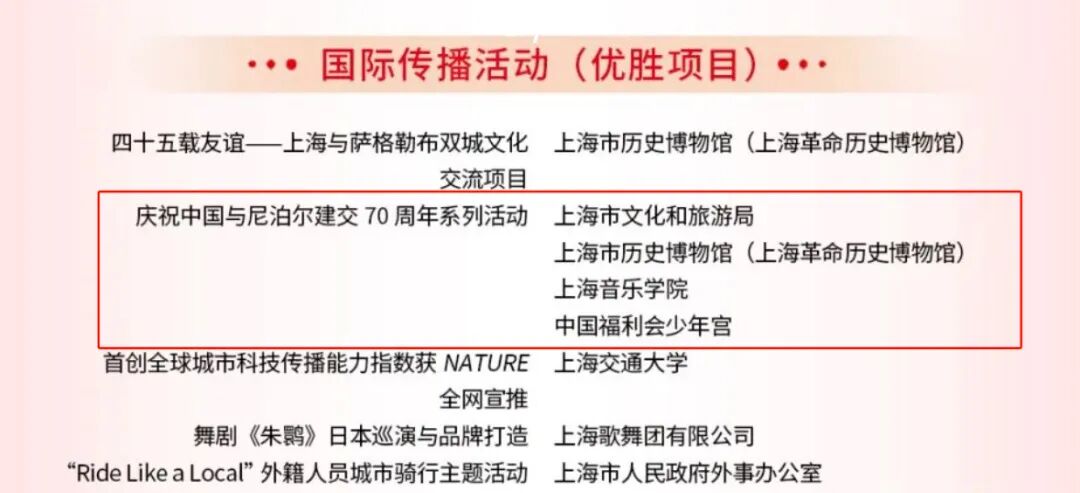 系列活动是为庆祝中国与尼泊尔建交70周年、深化“一带一路”沿线国家人文交流、推动中外民心相通打造的重点涉外文化交流项目,由上海市文化和旅游局、上海市历史博物馆(上海革命历史博物馆)、上海音乐学院、中国福利会少年宫联合参与实施。