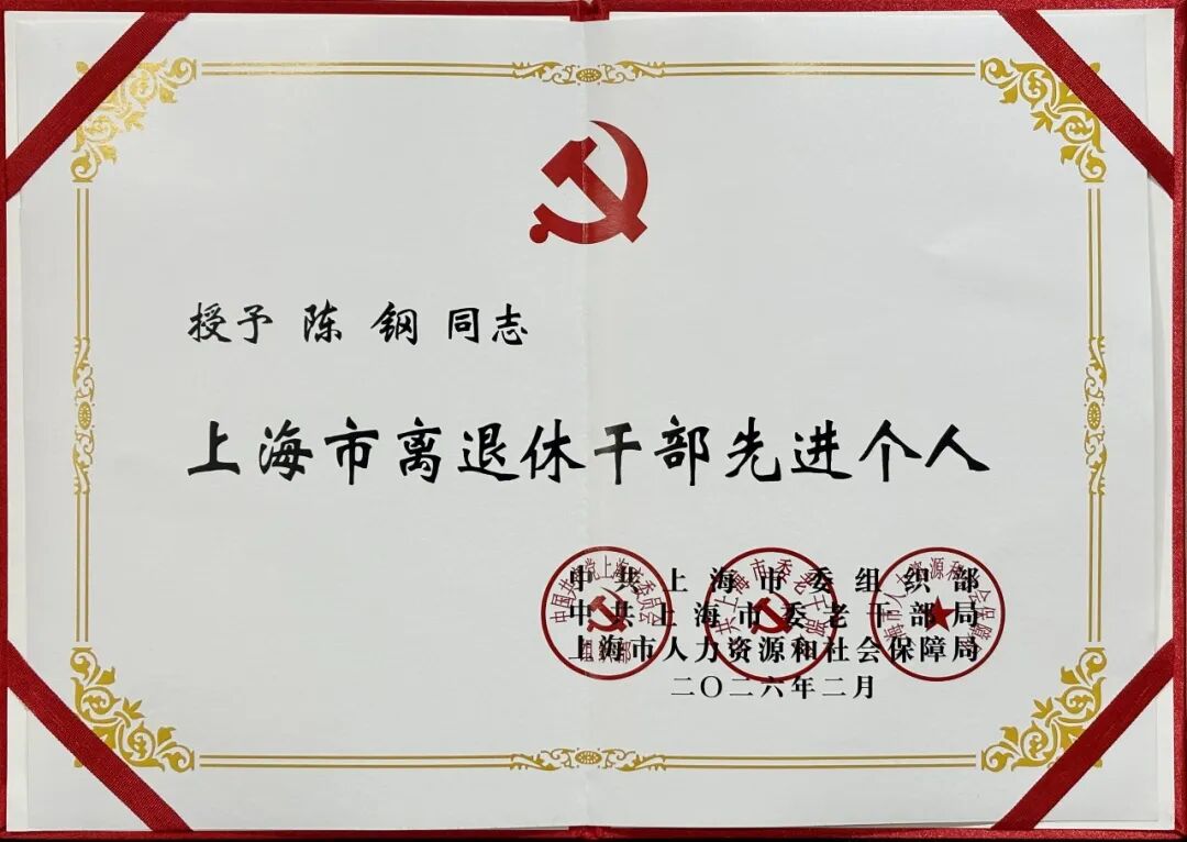 陈钢荣获“上海市离退休干部先进个人”称号