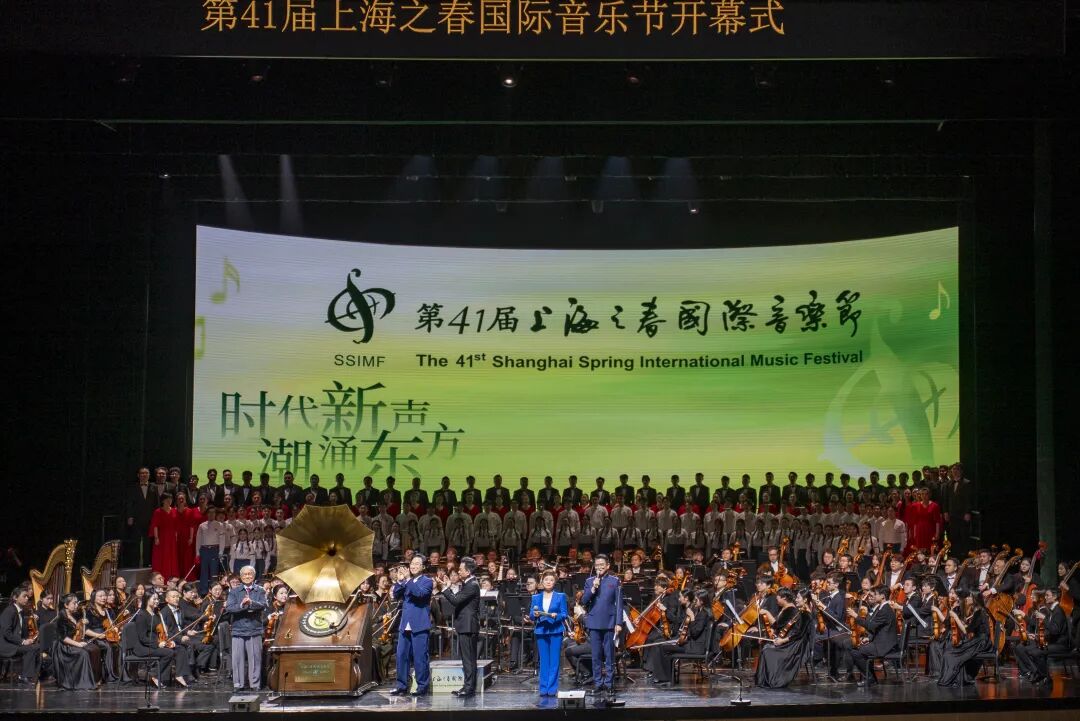 演出开场前,“七一”勋章获得者、上音杰出校友吕其明,廖昌永,上海歌剧院院长石倚洁共同为本届“上海之春”启幕。