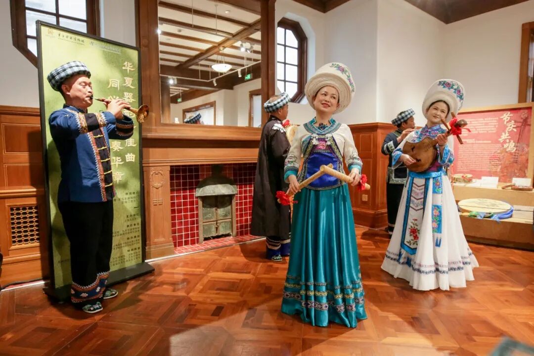 贵州黔西南非遗传承人和兴义民族师范学院的师生,以竹笛、刺鼓、月琴、竹鼓等特色乐器,演绎布依八音坐唱经典;上音“东方雅乐”民族器乐弹唱组合,用非遗民族乐器扎念、鹰骨笛搭配古典吉他、箱鼓,唱响西北果洛地区民歌《祝福草原》;内蒙古艺术学院非物质文化遗产学院的麦拉苏的口弦和呼麦,让人瞬间置身于天苍苍野茫茫的内蒙古大草原。让民族音乐之美在上音校园交融绽放,也让上音校园开放从物理空间延伸至艺术普及与立德树人的深度融合。